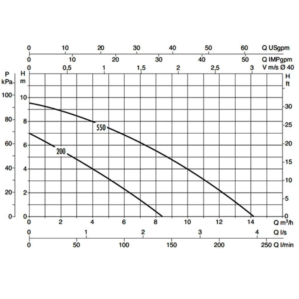 Графические характеристики дренажного насоса DAB NOVAPOND 200 M