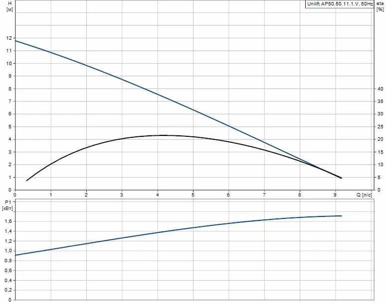 Графические характеристики дренажного насоса Grundfos GRUNDFOS UNILIFT AP50.50.11.1.V
