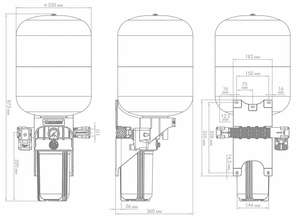 1. Для закрепления на стене КРАБ-Т демонтируйте гидроаккумулятор и колбу фильтра с корпуса, оба изделия вывинчиваются по резьбе.