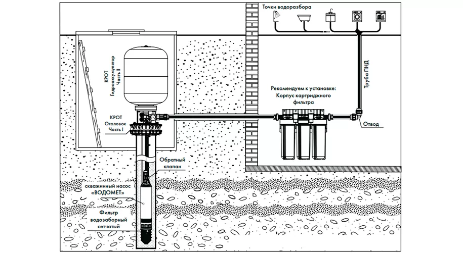 ДЖИЛЕКС КРОТ 50 это универсальное решение для автоматического водоснабжения. Джилекс КРОТ 50 совмещает в себе оголовок для скважины, реле давления (автоматика для включения- отключения скважинного насоса), манометр и гидроаккумулятор на 50 литров. Конструкция данной системы облегчает монтаж оборудования для автоматизации водоснабжения, лишает систему лишних. Благодаря Джиликс КРОТ 50 вы получаете все что нужно для автоматической системы водоснабжения в одном устройстве, при этом монтаж это не конструктор с множеством запчастей а комплект с двумя составляющими. Комплект Джилекс КРОТ 50 состоит из оголовка (с встроенной автоматикой и манометром) и мембранного бака на 50 литров. Все составляющие автоматики КРОТ взаимозаменяемы.