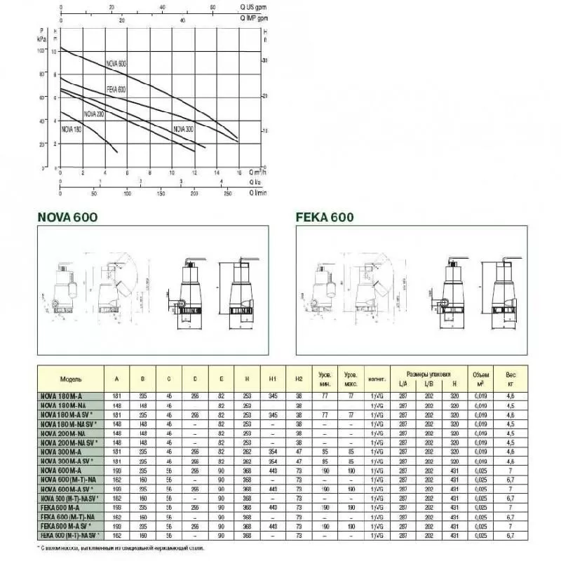 Графические характеристики фекального насоса DAB FEKA 600 T-NA - SV