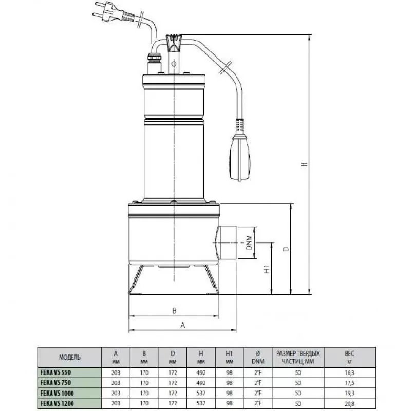 Схема фекального насоса DAB FEKA VS 550 T-NA