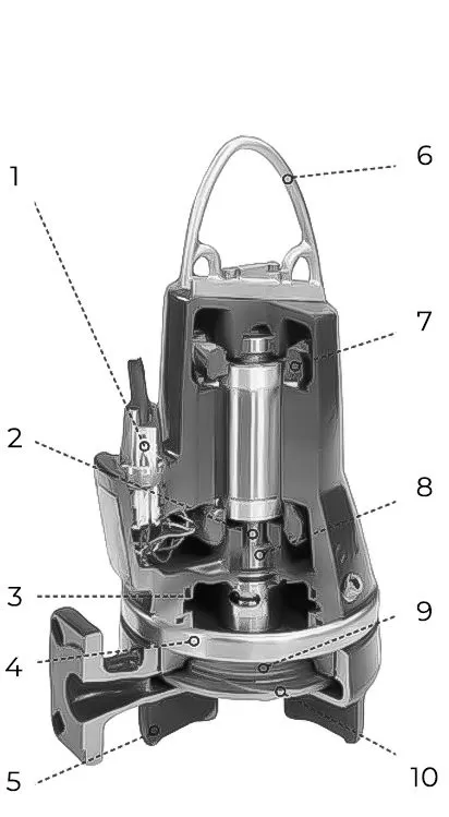 Схема фекального насоса GRUNDFOS SEG.40.15.2.50B