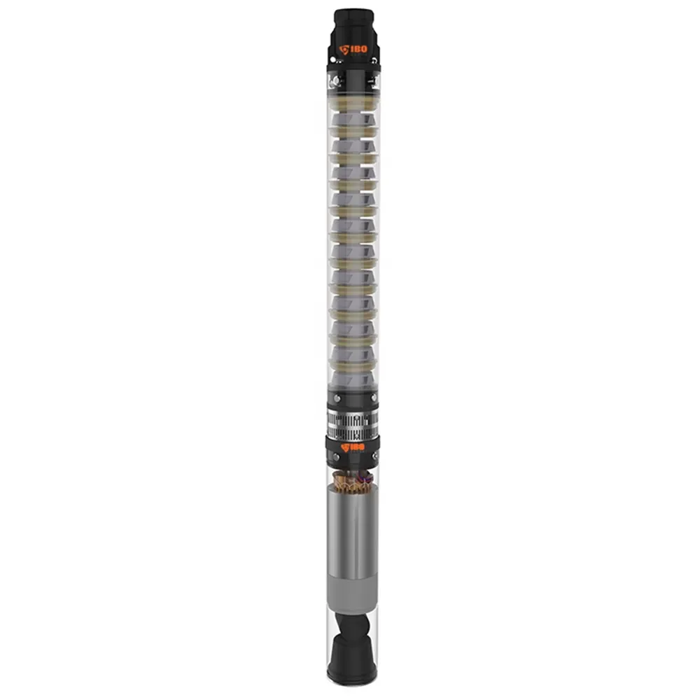 Насос для скважины IBO 3.5 SCM 3/25 кабель 20 метров диаметром 90 мм с повышенной устойчивостью к песку. Глубинный насос IBO 3.5 SCM 3/25 кабель 20 метров отличается своей надежностью и довольно низкой ценой. Неплохой стоимости насоса добились за счет удешевления незначительных компонентов насоса. В насосе IBO 3.5 SCM 3/25 кабель 20 метров используется технология «плавающих лопастных колес», а также для основных рабочих элементов насоса применяются износостойкие материалы. Благодаря этому насос IBO 3.5 SCM 3/25 кабель 20 метров имеет повышенную устойчивость к песку. Насос комплектуется кабелем 20 м, по желанию его можно нарастить до нужного размера. Скважинный насос IBO 3.5 SCM 3/25 кабель 20 метров имеет сбалансированные характеристики, относительно габаритов насоса и мощности электродвигателя. Напор глубинника в максимальной точке составляет 108 м, а производительность достигает максимального показателя в 7.2 м³/час. Мощность электродвигателя насоса составляет 1800 Вт, то вполне неплохо для насоса с такими напорно-расходными характеристиками. Насосы серии SCM марки ИБО были первыми насосами на рынке, названными «анти–песочными». Они по прежнему являются одними из немногих скважинных насосов на рынке, которые имеют конструкции с такой высокой устойчивостью к песку. Максимальное содержание песка в воде – до 5%.