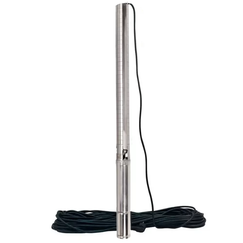 Погружной насос для скважины IBO 3ISP 3/24 диаметром 76 мм выполнен полностью из нержавеющей стали, предназначенные для установки в скважинах диаметром не менее 90 мм. Максимальное содержание песка в воде – до 0,3%. Насос IBO 3ISP 3/24 является одним из самых прочных в отношении конструкции насосом для глубоких скважин благодаря используемым материалам. Заборная часть и напорный патрубок, корпус, вал и роторы 100% изготовлены из нержавеющей стали. Насос поставляются в комплекте с 3–дюймовыми масляными двигателями. Скважинный насос обладает сбалансированными напорно-расходными характеристиками. Максимальный напор насоса составляет 85 м, максимальная производительность равна 3.9 м³/час, при этом мощность электродвигателя 750 Вт. Насосы ИБО серии 3ISP являются первыми насосами на Белорусском рынке, полностью изготовленными из нержавеющей стали диаметром 76мм. Насос комплектуется кабелем 1 м, предназначенный для погружением в воду. По желанию заказчика возможно удлинение кабеля на любую длину.