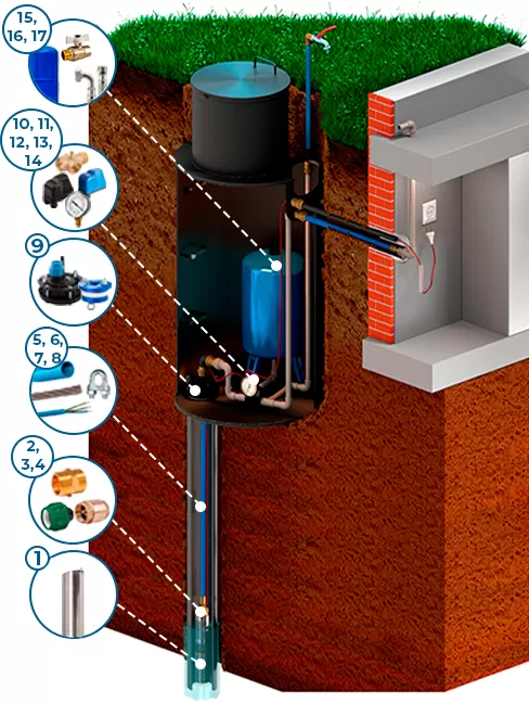 Водоснабжение односемейных домов и дачных домиков.Установка скважинного насоса IBO 3ISP 3/24