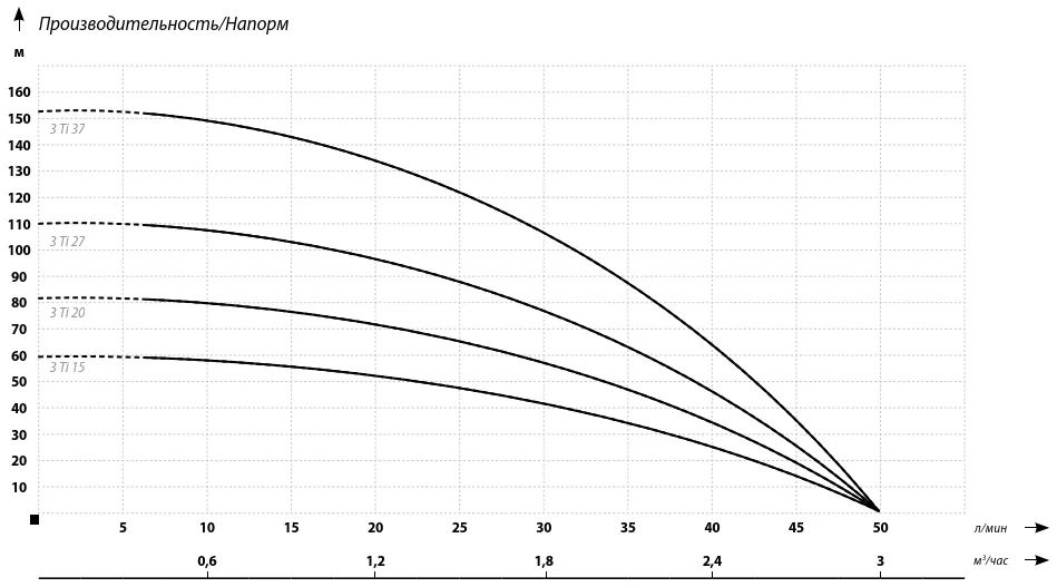 Графические характеристики насоса для скважины IBO 3Ti 20