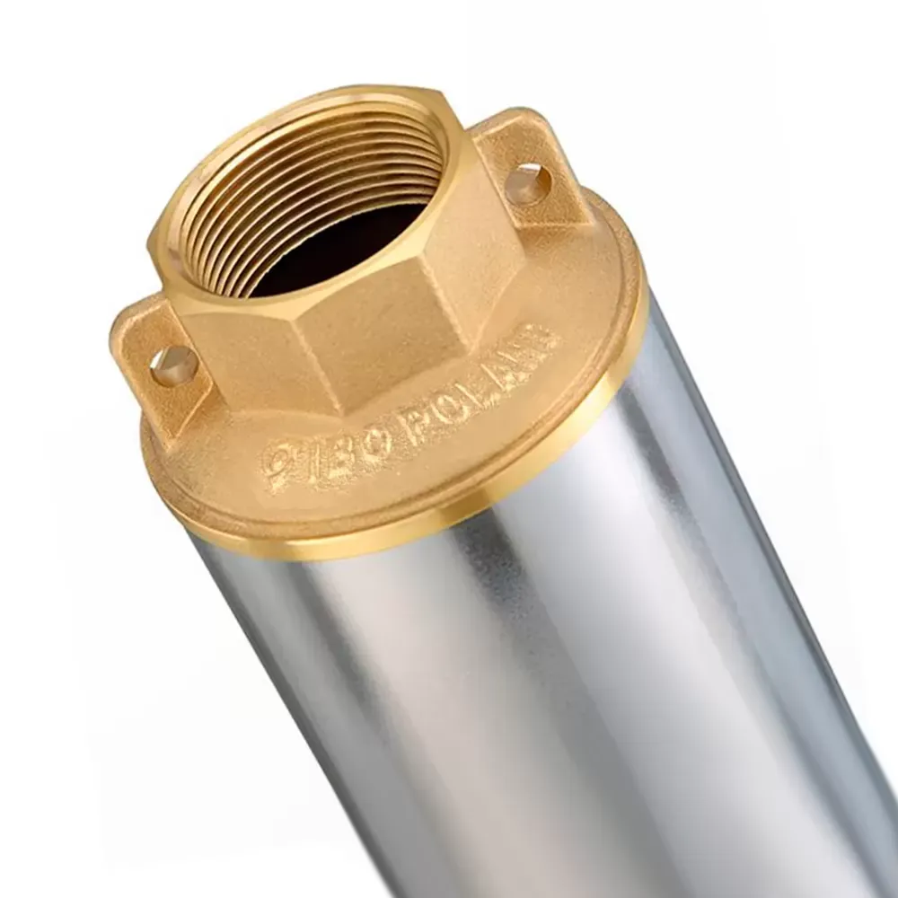 Насос для скважины IBO 3Ti 27 кабель 20 метров 3–х дюймовые многоступенчатые погружные насосы диаметром 74 мм с повышенной стойкостью к песку, рассчитаны на 3 и 4– дюймовые скважины. Напорная характеристика насоса составляет 110 м при максимальной производительности в 3 м³/час, при этом мощность электродвигателя составляет 750 Вт. Эффект повышенной устойчивости к песку был достигнут благодаря использованию «плавающих лопастных колес» и выбору износостойких материалов: латуни, нержавеющей стали AISI 304 и высококачественного пластика. В связи с этим гарантийный срок на насос 750 Вт предоставляется на 2 года Конденсатор насоса IBO 3Ti 27 кабель 20 метров встроен в двигатель, благодаря чему электрическая установка намного проще, чем в случае насосов со стартовой коробкой. Длинна кабеля насоса 750 Вт составляет 20 м. Насосы оснащены тепловой защитой, установленной в обмотке двигателя. Насосы серии 3” Ti благодаря своей бесперебойной работе и высоким параметрам были признаны чаще всего устанавливаемыми насосами в Польше.
