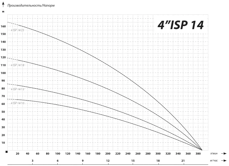 Условия работы насоса IBO 4ISP 14/10: