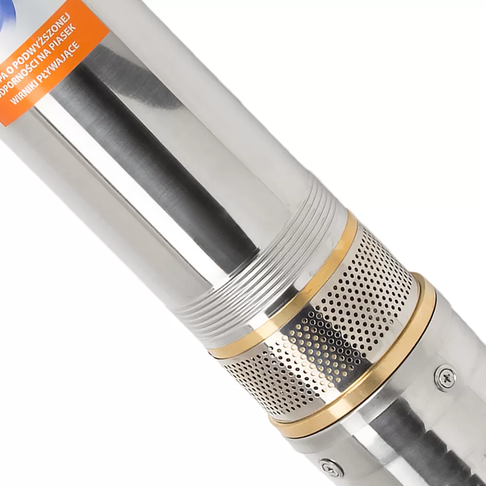 Трехфазный глубинный погружной насос IBO 4SD 3/14 (380В) диаметром 98 мм с повышенной устойчивостью к песку. Насос IBO 4SD 3/14 (380В) доступен к покупке с двигателями IBO и итальянскими двигателями IBO ITALY. В насосе IBO 4SD 3/14 (380В) используется технология «плавающих лопастных колес», а также для основных рабочих элементов насоса применяются износостойкие материалы: латунный нагнетательный патрубок, корпус, вал и сетка фильтра выполнены из нержавеющей стали AISI 304 / а также лопастные колеса выполнены из высококачественной пластмассы, Благодаря этому насос IBO 4SD 3/14 (380В) имеет повышенную стойкость к песку. Насос комплектуется кабелем 1 м, по желанию его можно нарастить до нужного размера. Скважинный насос IBO 4SD 3/14 (380В) имеет отличные характеристики. Напор насоса в максимальной точке составляет 103 м, а производительность достигает максимального показателя в 5.64 м³/час. Мощность двигателя составляет 1100 Вт, то вполне неплохо для насоса с такими напорно-расходными характеристиками. Насосы серии SD марки ИБО были первыми насосами на рынке, названными «анти–песочными». Они по прежнему являются одними из немногих скважинных насосов на рынке, которые имеют конструкции с такой высокой устойчивостью к песку. Максимальное содержание песка в воде – до 5%. Насос IBO 4SD 3/14 (380В) можно применять как аналог насосов ЭЦВ.