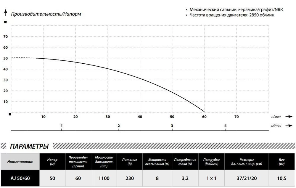 - Механический сальник: керамика/графит/NBR