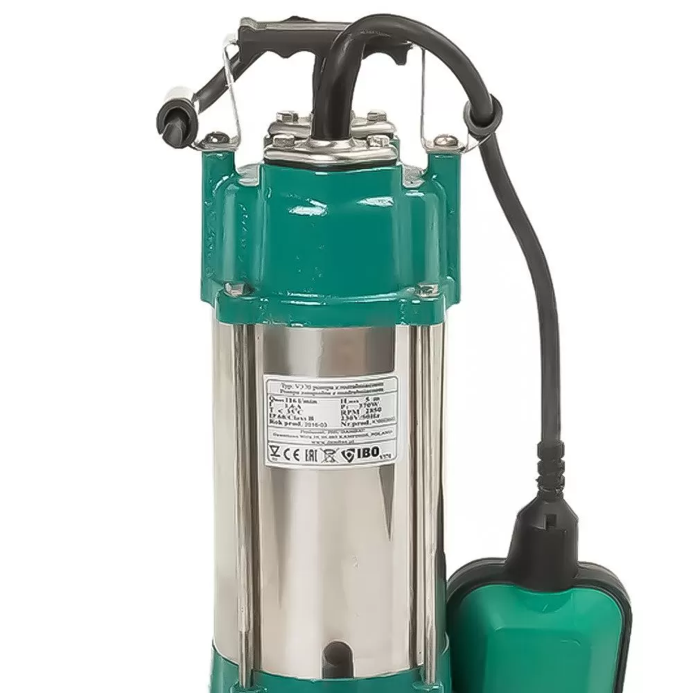 Фекальный насос IBO V 370 является погружным насосом, предназначенным для откачивания малых выгребных ям, септиков и использования в слабозагрязненных малых фекальных канализациях. Он обладает хорошей балансировкой и приличными напорно-расходными характеристиками, несмотря на свою небольшую мощность. Максимальный напор этого насоса составляет 7.5 метров, а производительность - 6.96 м³/час. Насос комплектуется поплавковым выключателем, который обеспечивает защиту от сухого хода. Он имеет диаметр разъема соединения 1¼" и может быть использован для водоотведения. Метод установки - погружной. Материал корпуса насоса может быть выполнен из чугуна или нержавеющей стали. Крыльчатка насоса изготовлена из чугуна, а измельчитель - из стали. Насос оснащен измельчителем, что позволяет перекачивать жидкость с частицами размером до 35 мм. Температурный диапазон перекачиваемой жидкости составляет 1 до 35 градусов Цельсия.
