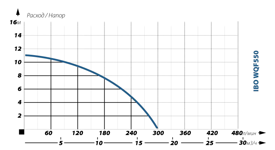 Графические характеристики дренажного насоса IBO WQF 550