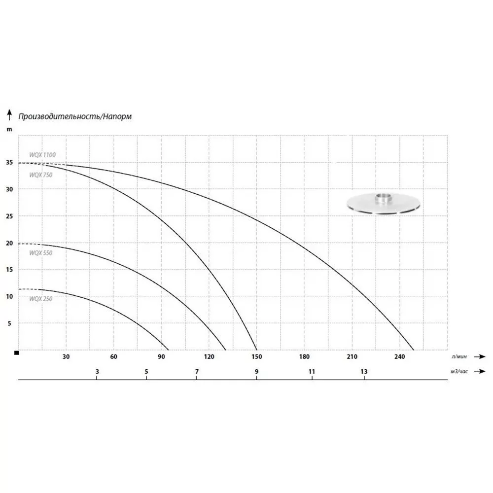 Графические характеристики дренажного насоса IBO WQX 550