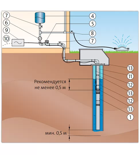 Подача грунтовой воды из скважин в системы водоснабжения частных домов, небольших водопроводных станций и ирригационных систем.