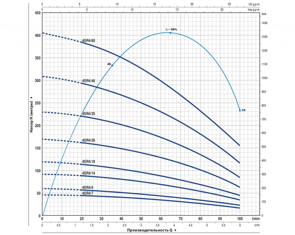 Глубинный насос Pedrollo 4SR4m/14-P с QEM 150, отличается объективной ценой и надежной работой всех исполнительных механизмов. Насос Pedrollo 4SR4m/14-P с QEM 150 достаточно простой в эксплуатации и обслуживании, поэтому отлично подходит как для домашнего, так и промышленного применения.В основе работы Pedrollo 4SR4m/14-P с QEM 150 лежит конструктивно простой, но функционально успешный многоступенчатый центробежный принцип. Электрический двигатель подключается к агрегату через суппорт, в соответствии с нормативами международного стандарта NEMA. Мощность электродвигателя насоса составляет 1100 Вт . И при таких показателях мощности насос обладает максимальным напором в 92 метров и максимальной производительностью 6 м3/час. Функционирование Pedrollo 4SR4m/14-P с QEM 150 идентично большинству устройств, основанных на центробежных механизмах подачи воды. Жидкость втягивается в корпус устройства благодаря центробежной силе, создаваемой рабочими колесами, которые также проталкивают воду через все тело насоса "диаметр насоса 4"", а затем в нагнетающий патрубок "диаметр патрубка 1¼"", через который вода и попадает к конечному потребителю. Главной особенностью насоса Pedrollo 4SR4m/14-P с QEM 150 является малый диаметр корпуса агрегата, а также то, что перекачиваемая вода не касается стенок двигателя. Между жидкостью и корпусом движущей установки располагается прослойка из технологического масла, которая и предотвращает попадание мелких частиц непосредственно в исполнительный механизм. В то время как охлаждение электропривода происходит за счет верхнего способа забора воды, т.е. перекачиваемая жидкость находится всегда выше уровня расположения двигателя. Насос питается от сети в 220 в и комплектуется кабелем 1.5 метров.
