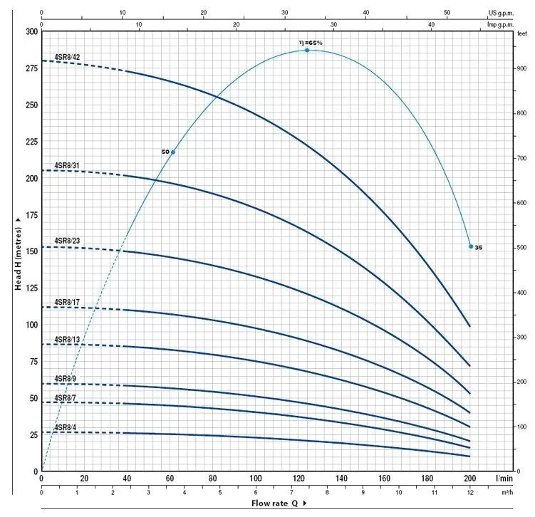 Глубинный насос Pedrollo 4SR8/13-P, отличается объективной ценой и надежной работой всех исполнительных механизмов. Насос Pedrollo 4SR8/13-P достаточно простой в эксплуатации и обслуживании, поэтому отлично подходит как для домашнего, так и промышленного применения.В основе работы Pedrollo 4SR8/13-P лежит конструктивно простой, но функционально успешный многоступенчатый центробежный принцип. Электрический двигатель подключается к агрегату через суппорт, в соответствии с нормативами международного стандарта NEMA. Мощность электродвигателя насоса составляет 2200 Вт . И при таких показателях мощности насос обладает максимальным напором в 87 метров и максимальной производительностью 12 м3/час. Функционирование Pedrollo 4SR8/13-P идентично большинству устройств, основанных на центробежных механизмах подачи воды. Жидкость втягивается в корпус устройства благодаря центробежной силе, создаваемой рабочими колесами, которые также проталкивают воду через все тело насоса "диаметр насоса 4"", а затем в нагнетающий патрубок "диаметр патрубка 2"", через который вода и попадает к конечному потребителю. Главной особенностью насоса Pedrollo 4SR8/13-P является малый диаметр корпуса агрегата, а также то, что перекачиваемая вода не касается стенок двигателя. Между жидкостью и корпусом движущей установки располагается прослойка из технологического масла, которая и предотвращает попадание мелких частиц непосредственно в исполнительный механизм. В то время как охлаждение электропривода происходит за счет верхнего способа забора воды, т.е. перекачиваемая жидкость находится всегда выше уровня расположения двигателя. Насос питается от сети в 380 в и комплектуется кабелем 1.5 метров.