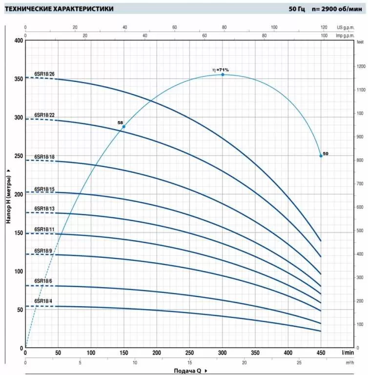 Устройство насоса Pedrollo 6SR18/6-P: