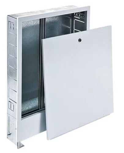 Корпус шкафа выполнен из оцинкованной стали. Передние панели окрашены порошковой краской RAL 9016 с предварительным нанесением фосфатной пленки для придания антикоррозионных свойств изделию. В боковых стенках корпуса шкафа выполнена перфорация, сегменты которой удаляются в любом удобном месте для подсоединения трубопроводов. Внутри шкафа установлены универсальные профильные крепления, позволяющие располагать оборудование по всей высоте и ширине шкафа. Шкаф имеет регулировку по высоте до 90 мм за счет выдвижных ножек и по глубине до 70 мм за счет выдвижной рамки. Надежные крепления к полу с помощью отверстий в выдвижных ножках. Удобная фиксация шкафа в стенной нише с помощью отгибных фиксаторов. Для защиты от несанкционированного доступа шкаф оснащен внутренним замком.